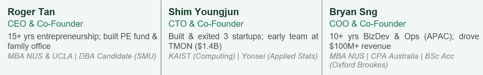 The founding team itself brings over 150+ years of combined experience across entrepreneurship, private equity, SaaS, accounting and technology. The company is APAC-first, with leadership that has built and exited ventures before.